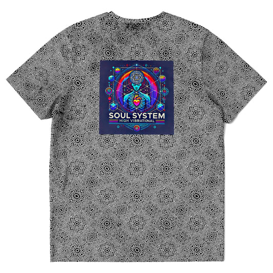 Geometric Grey Grid Soul System T-Shirt – Premium All-Over Print (AOP) Outerwear Design