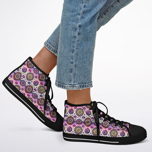 Geometric Pink & White High-Top Sneakers – All-Over Print Urban Streetwear, Trendy Casual Shoes