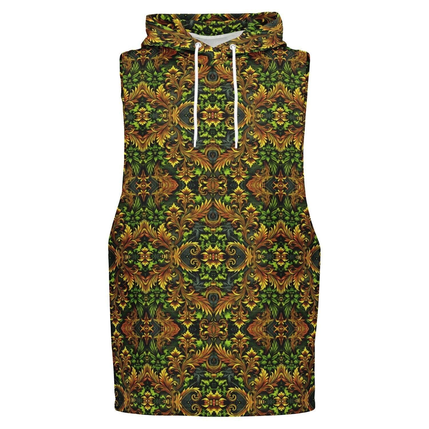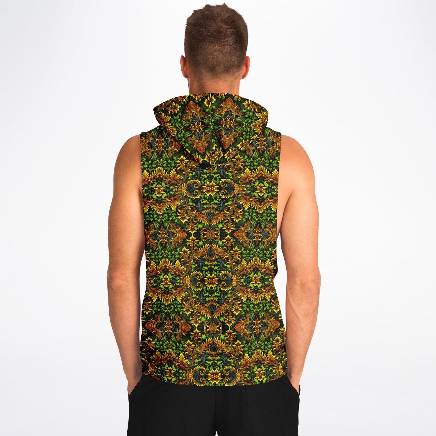 Emerald Green & Gold Athletic Drop Armhole Hoodie – All-Over Print, Lightweight & Breathable Activewear