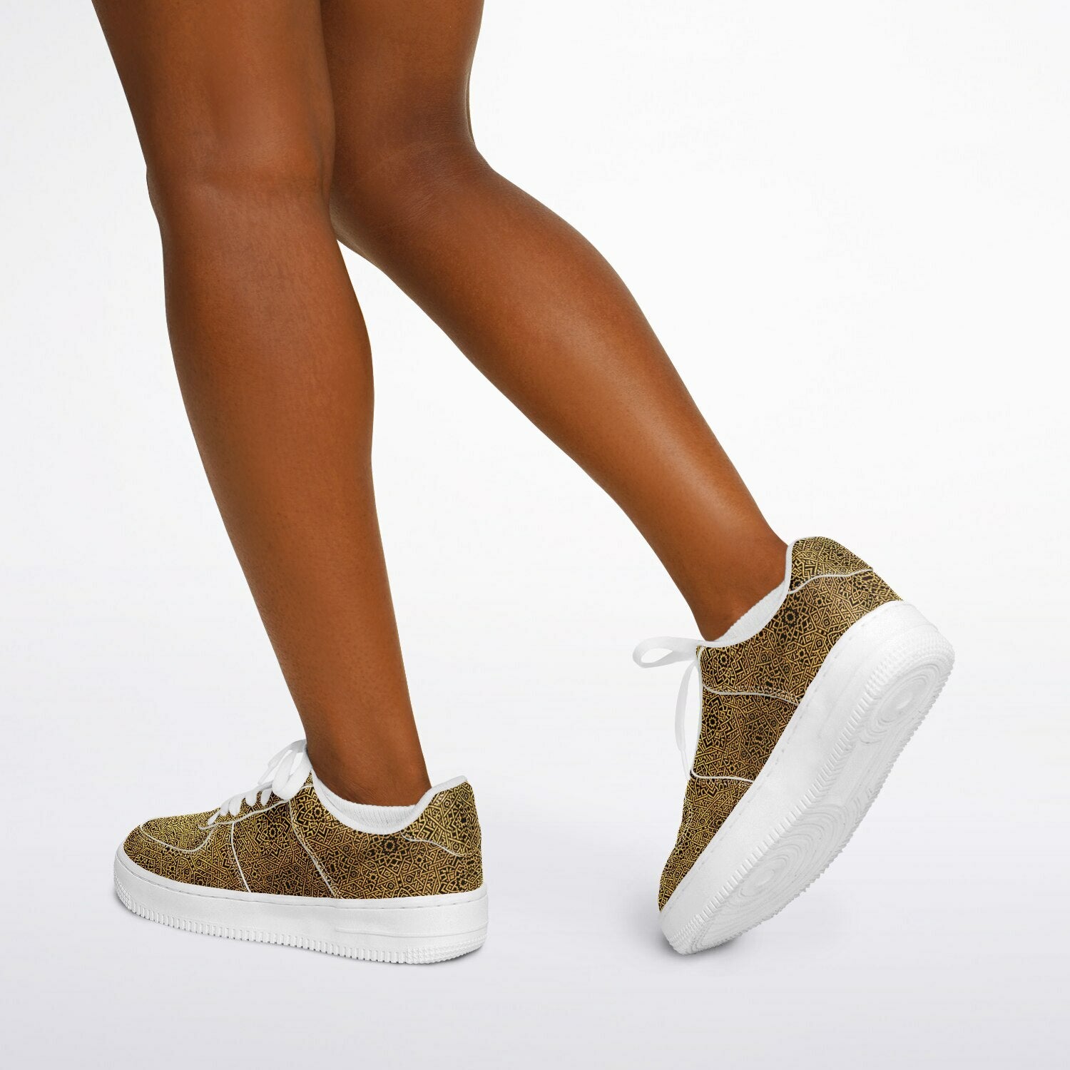 Geometric Gold Core Low Shoes – Unisex Custom Sneakers | Geometric Gold Pattern | Stylish Streetwear & Outerwear