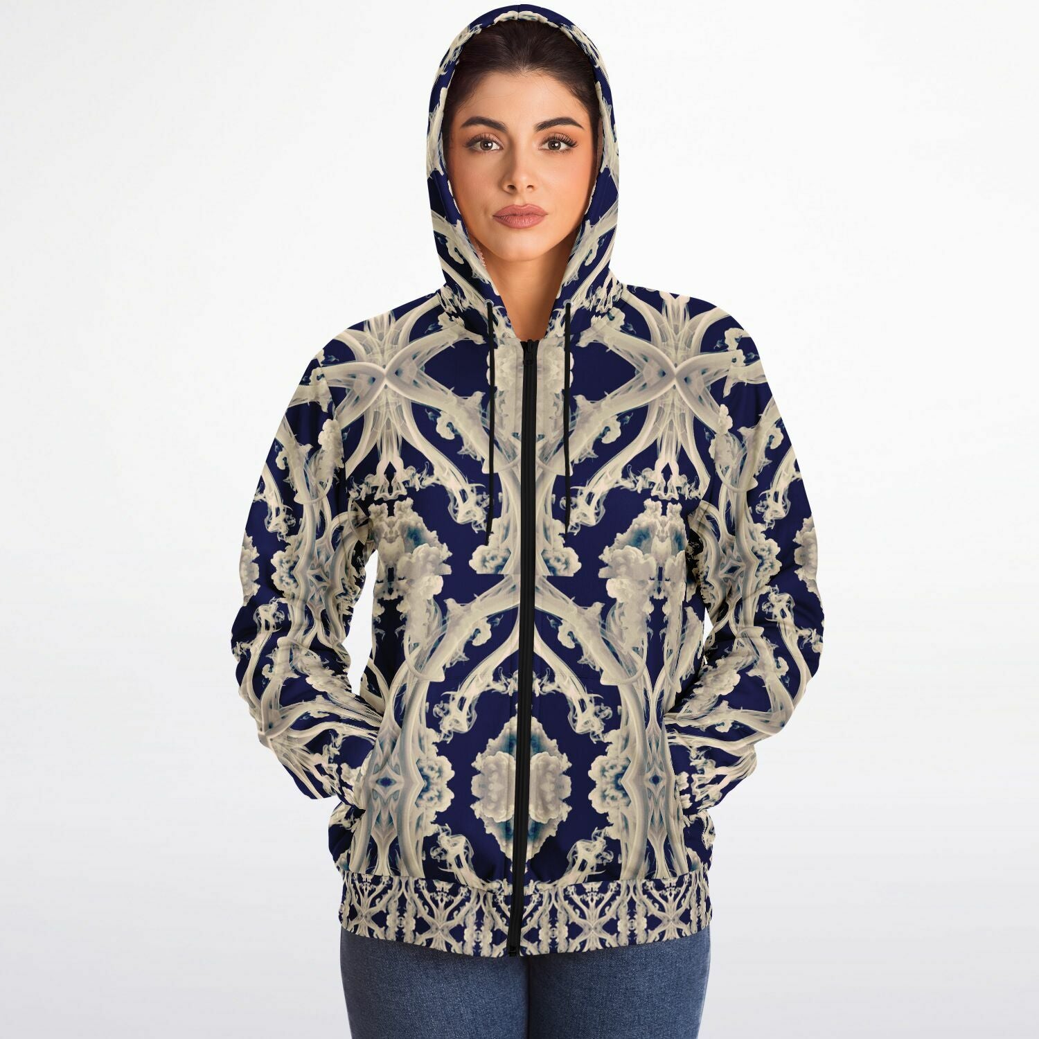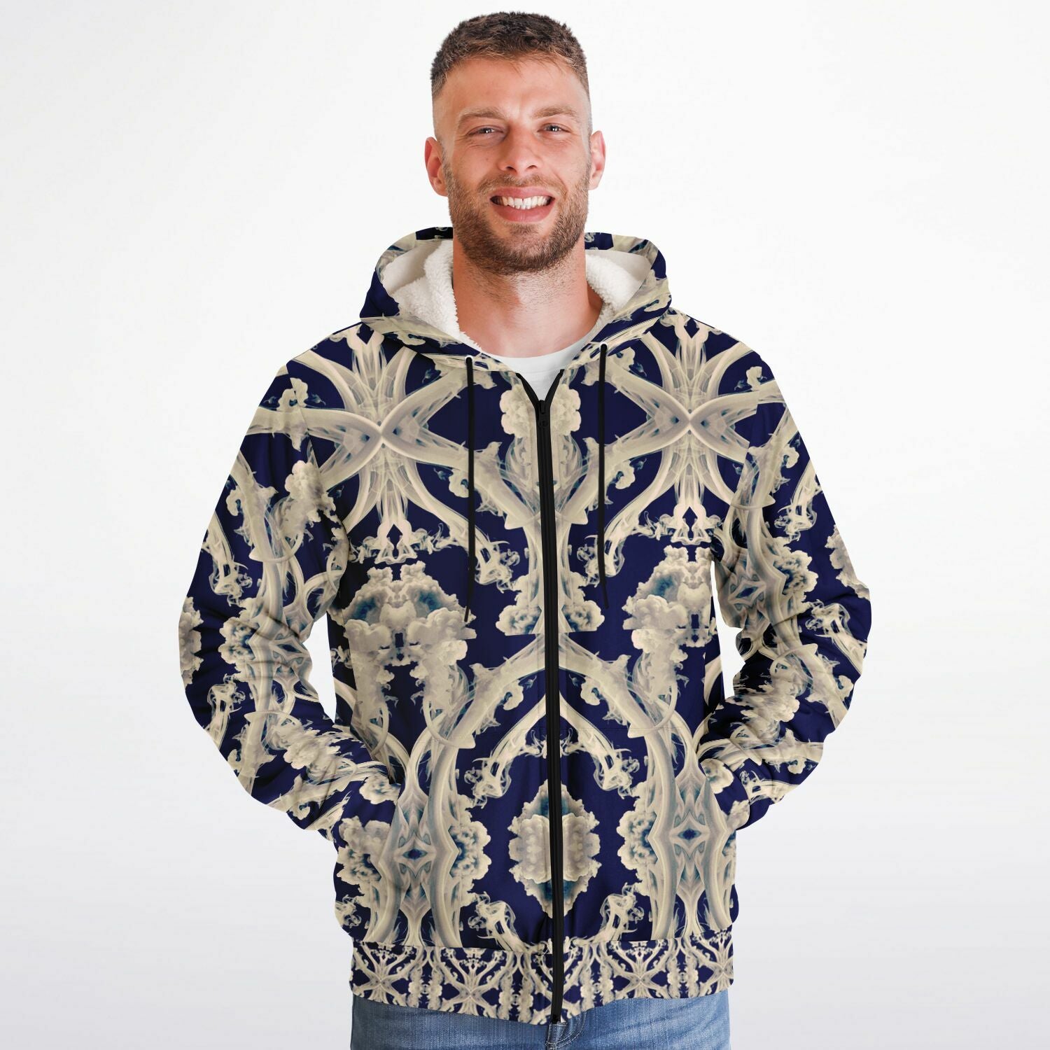 Clear Smoke, Cymatic, Microfleece Zip Hoodie – Sleek, Cozy & Futuristic All-Over Print Jacket