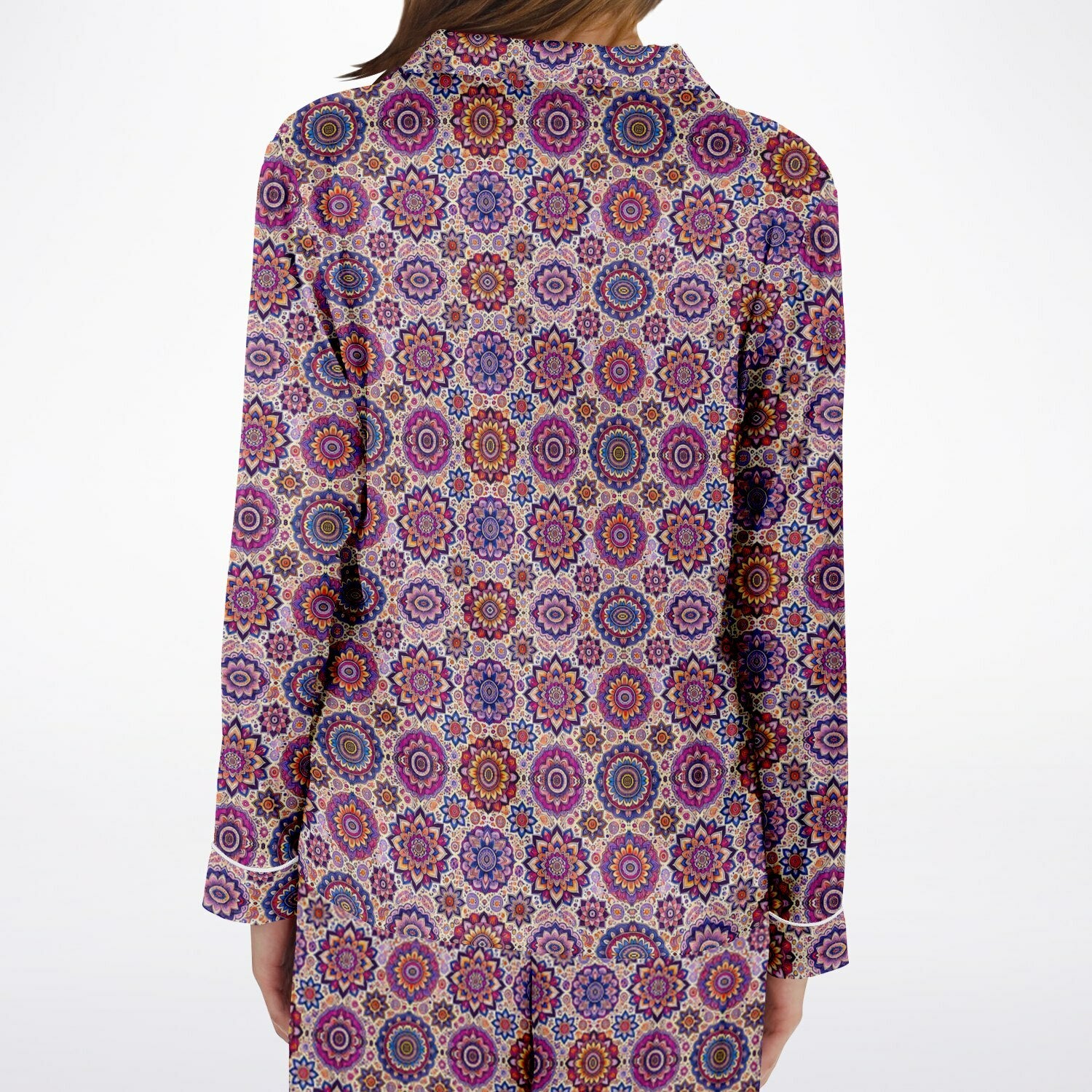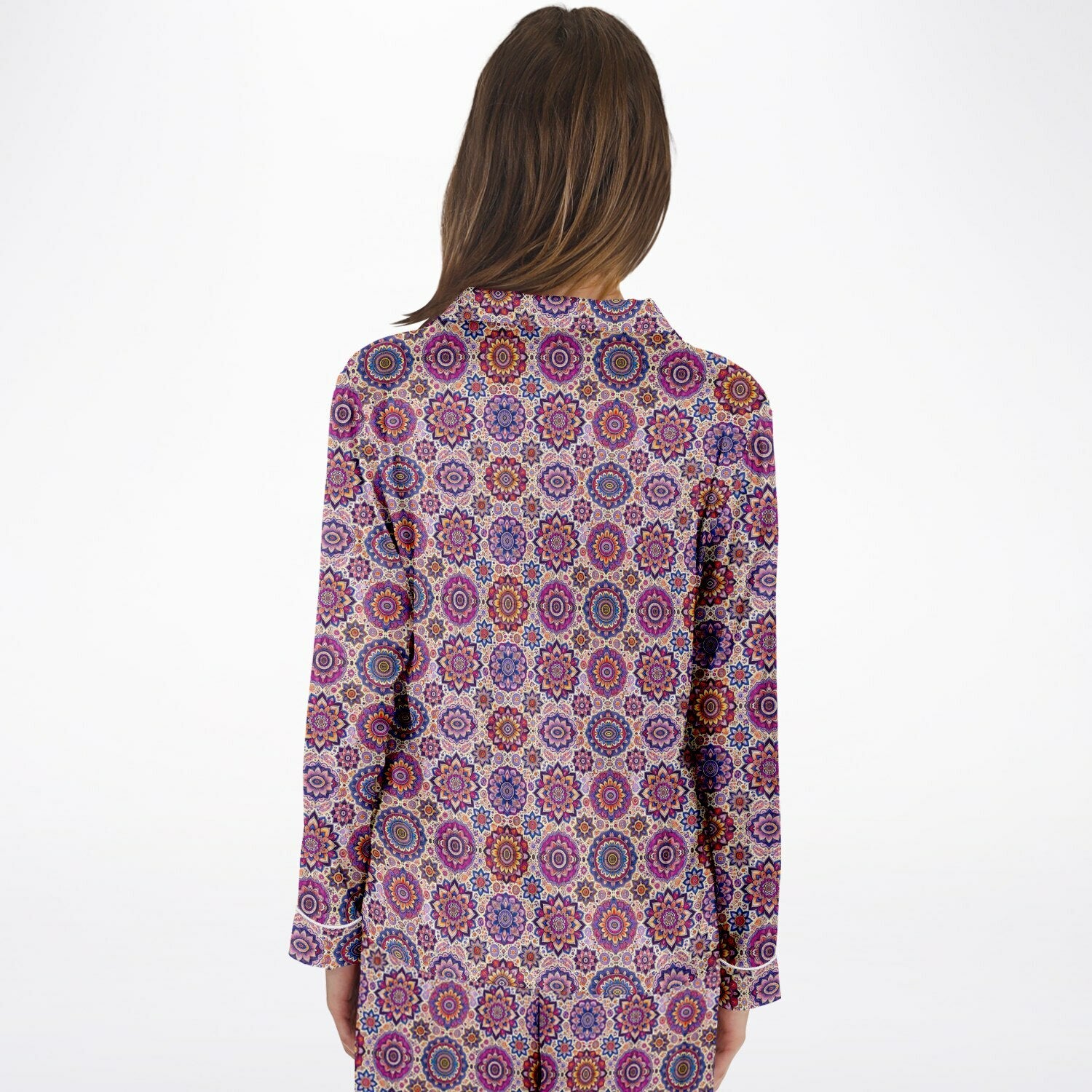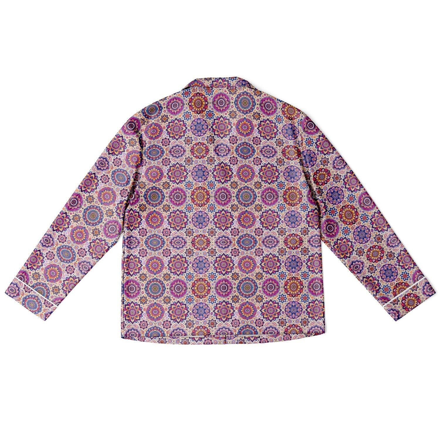 Featuring high-definition all-over printing, these pajamas boast vivid geometric patterns that maintain their color vibrancy and intricate design even after multiple washes. No fading, cracking, or peeling—just luxury that lasts.