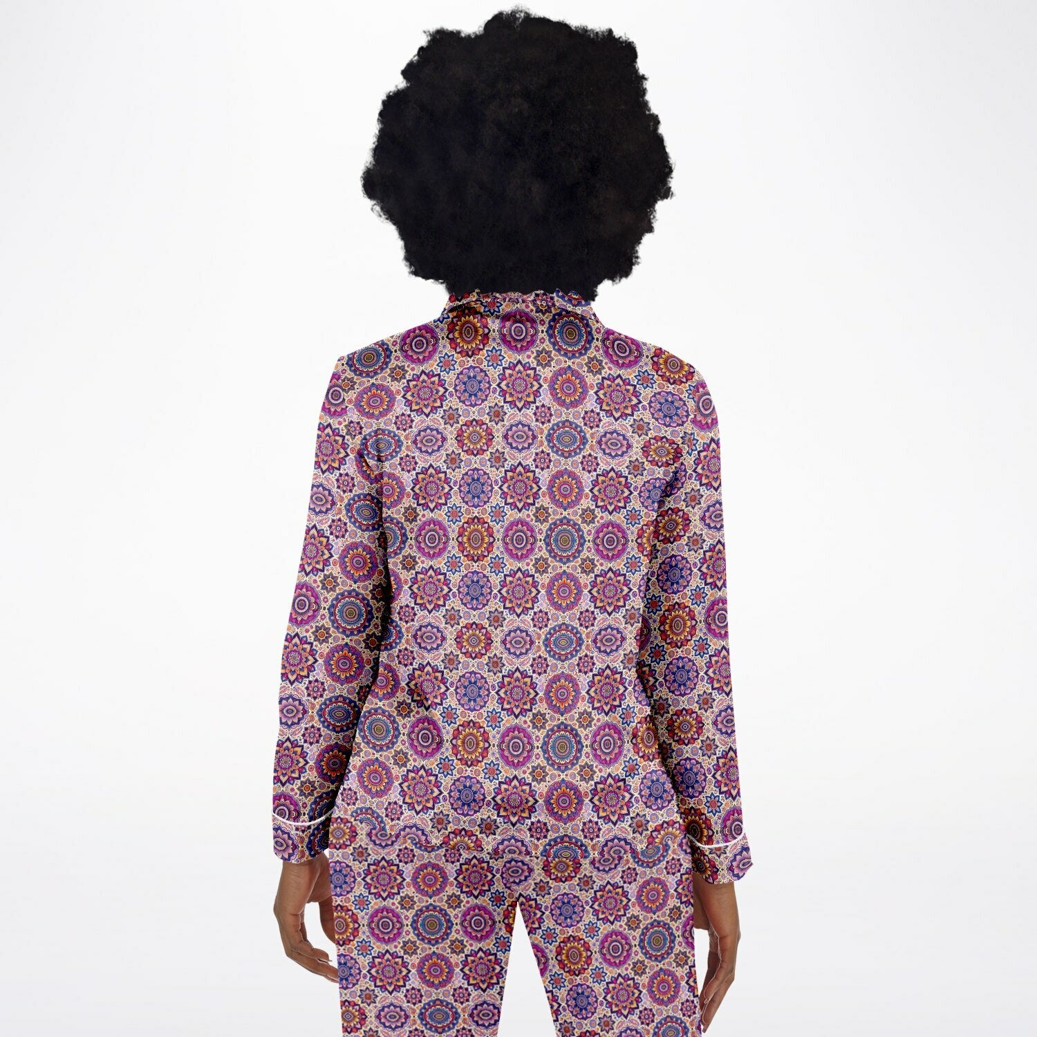 Luxury Pink Geometric Women’s Satin Pyjamas – All-Over Print Elegant Sleepwear, Soft & Comfortable Pajama Set for Women