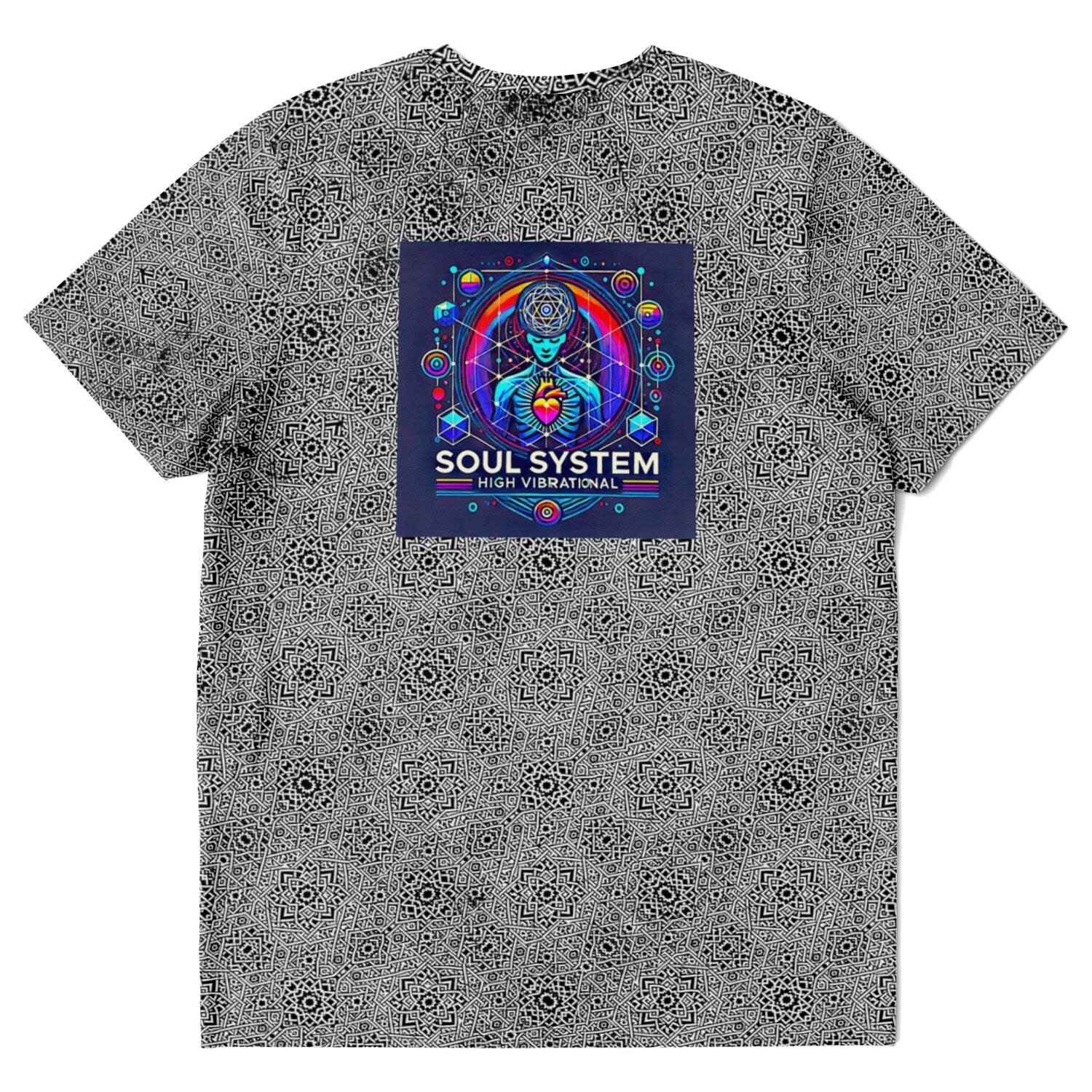Geometric Grey Grid Soul System T-Shirt – Premium All-Over Print (AOP) Outerwear Design