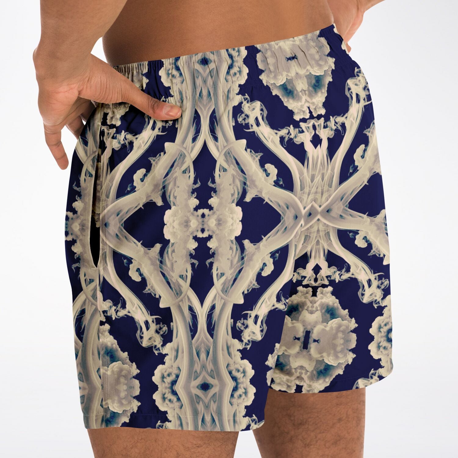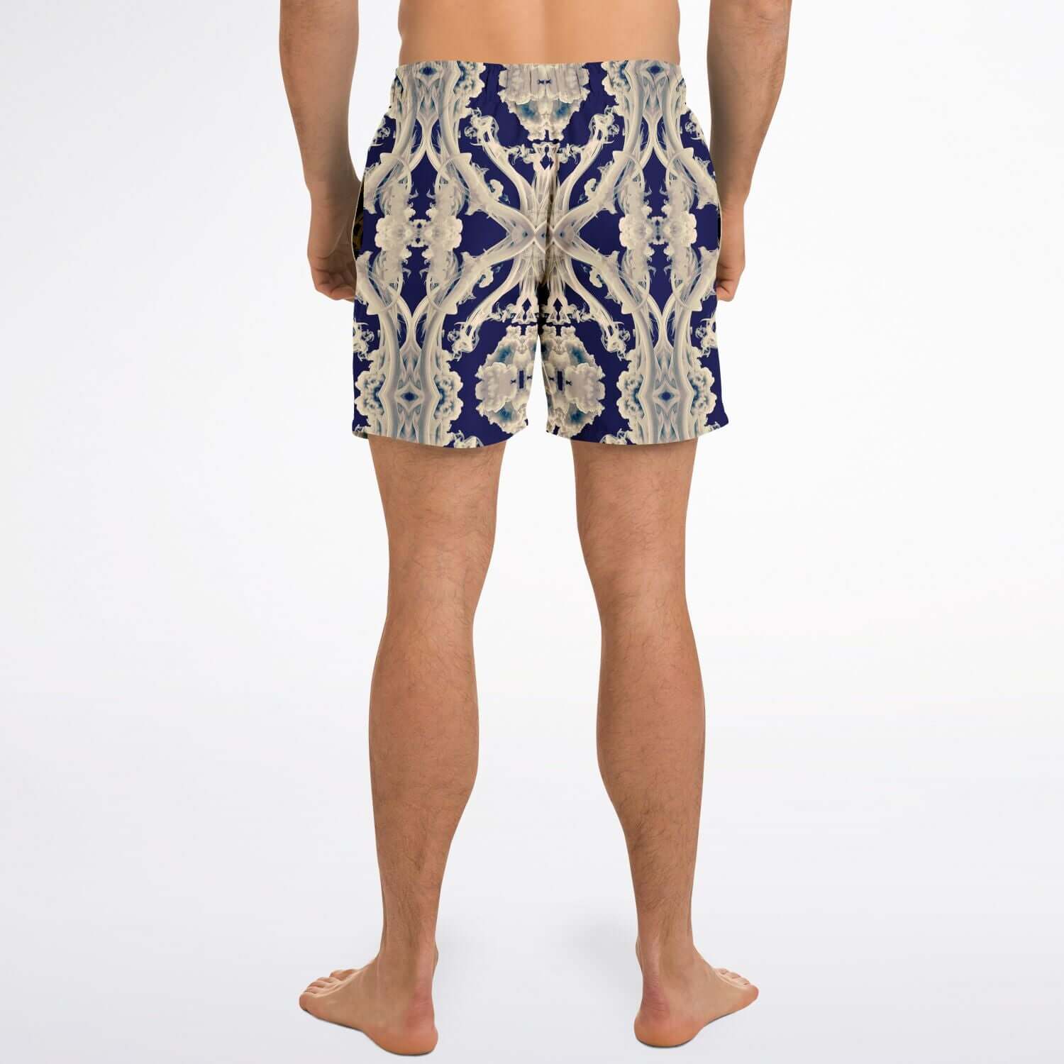 Clear Smoke Cymatic Men’s Swim Trunks – Futuristic, Quick-Dry & Stylish Above-the-Knee Swimwear